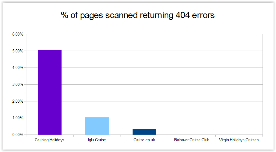 Worst performer: Cruising Holidays (5.07% of pages scanned return 404 errors)