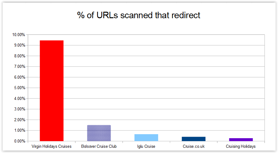 Worst performer: Virgin Holidays Cruises (9.46% of URLs scanned redirect)