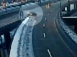 Shocking moment driver crashes off expressway onto lower…