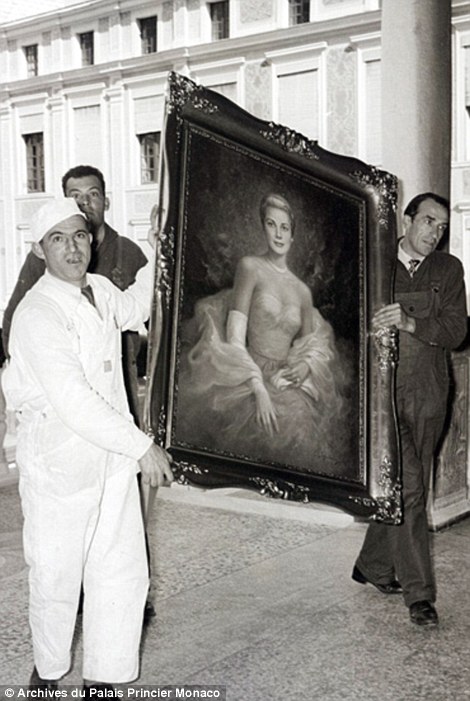 Preparation: Monaco’s Royal Palace was completely renovated prior to the wedding, including paintings of the new princess (left). Kelly (right) was known prior to the wedding as one of America’s top female film stars, being directed by Alfred Hitchcock and John Ford