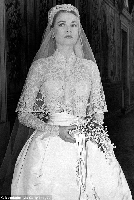 Princess: Philadelphia-born Kelly wore a white dress that took 36 seamstresses three weeks to make, and used 300 yards of antique Belgian lace and 150 yards of silk, taffeta and tulle. It was provided by MGM Studios, and created by an Oscar-winning costumer