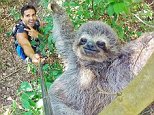 Finally, a reason for a selfie stick! A smiling sloth climbs…