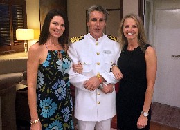 Andrea Campbell (at right), owner of a Tampa, FL, Cruise Planners franchise, is shown on Windstar Cruises with the ship’s captain and friend Kim Birnbaum.