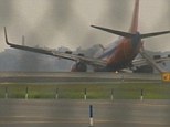 Plane slides on belly when front landing gear fails