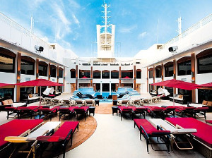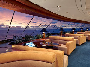 On MSC Divina the Top Sail Lounge, described as a burgundy and chocolate upholstered perch overlooking the bow, is reserved for the 100 Yacht Club passengers, who for more than twice the price of a standard oceanview, can choose cabins ranging from one bedrooms to suites, with a private restaurant, exclusive bars, plenty of outdoor square footage cordoned off from the remainders of the passenger, plus VIP seats at the shows, and avenues to bypass other passengers getting on and off the ship.