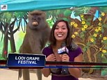 Frisky fella! Baboon gropes TV reporter live on air