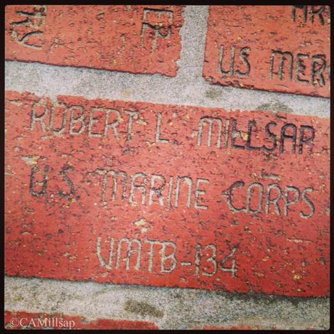 With the help of a map supplied by museum staff, we found my father-in-law’s engraved brick on the walkway near the entrance of the museum. My husband brushed away a few fallen leaves and I took his photo with it. We stood there for a few more minutes without saying anything, both of us lost in our own thoughts of someone we’d loved.