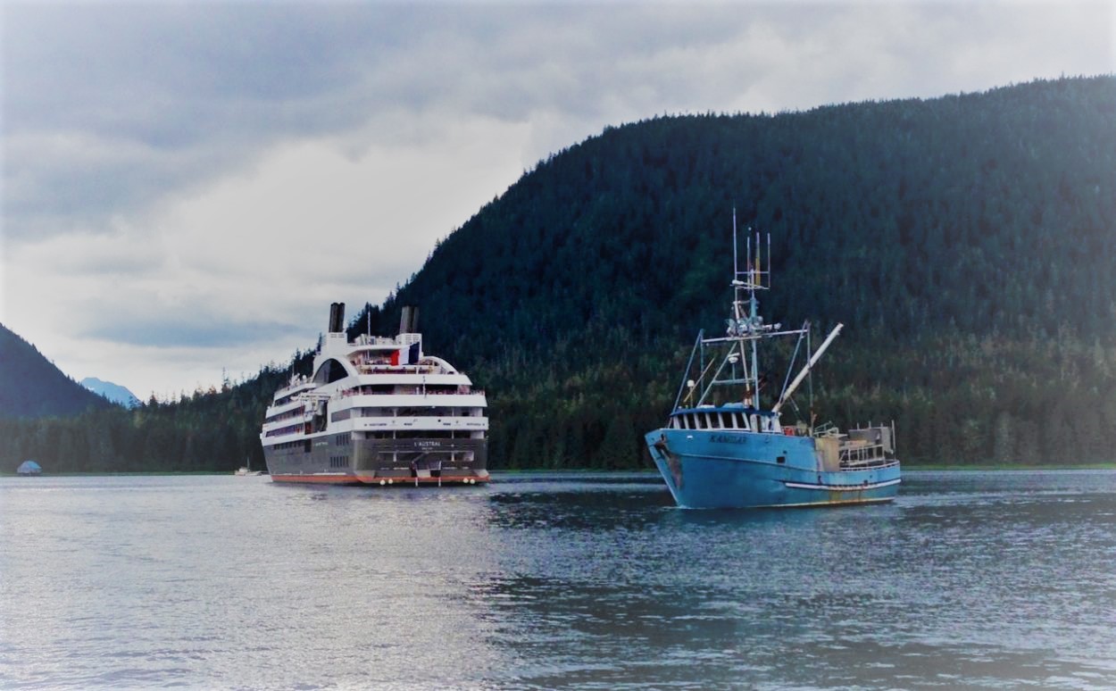 “Fortunately, most of the small ships that come into Petersburg are US flagged vessels,” said Dave Berg, co-founder of the travel agency, Viking Travel in Petersburg. He and books tourist trips all over Alaska and helps coordinate the local cruise visits.